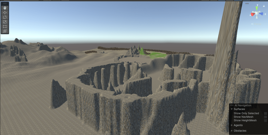 Mimarlıkta olduğu gibi, oyunlarda da ölçek, oyuncunun hissini belirler. Unity sahnesinde yer alan bu devasa kaya oluşumları, oyuncunun içinde kaybolacağı bir dünya hissi verirken; ağaçlar ise mekânın canlılığını ve doğasını temsil eder. Yüzüklerin Efendisi‘nde Fangorn Ormanı, antik ağaçların uzun gövdeleriyle büyülenmiş bir ormandır. Yüzüklerin Efendisi içerisinde geçen bu orman sahneleri, bir ormanın sadece bir dekor olmadığını, karakterlerin ruh halini ve kararlarını etkileyen, neredeyse canlı bir varlık olduğunu gösterir. Oyunlarda da benzer şekilde, çevre unsurları oyuncunun duygusal yolculuğunu etkiler.